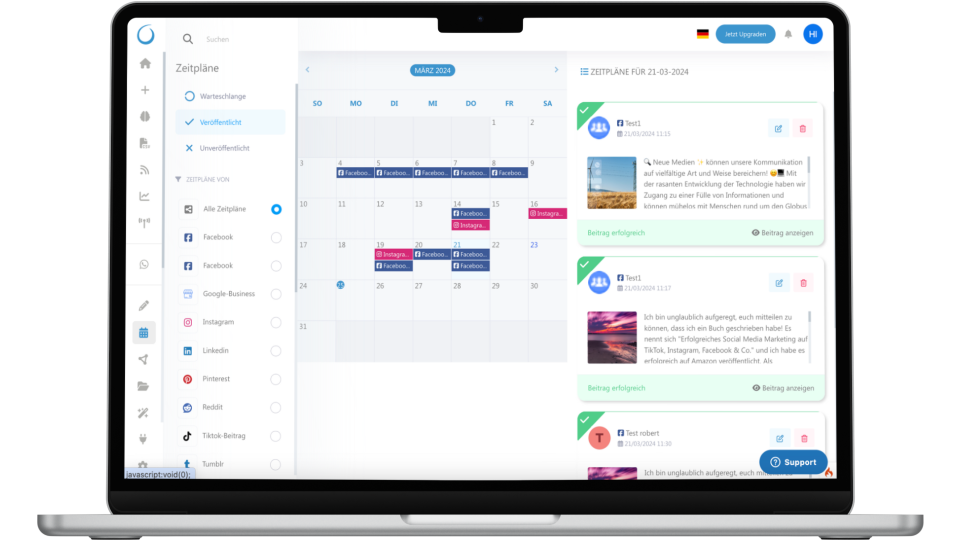 Das heißt: Du planst deine Posts einmal – und sie gehen zeitgleich auf bis zu 13 Kanälen online. Perfekt für Selbstständige, Blogger, Agenturen oder Creator, die nicht jeden Tag Stunden in manuelles Posten stecken wollen.